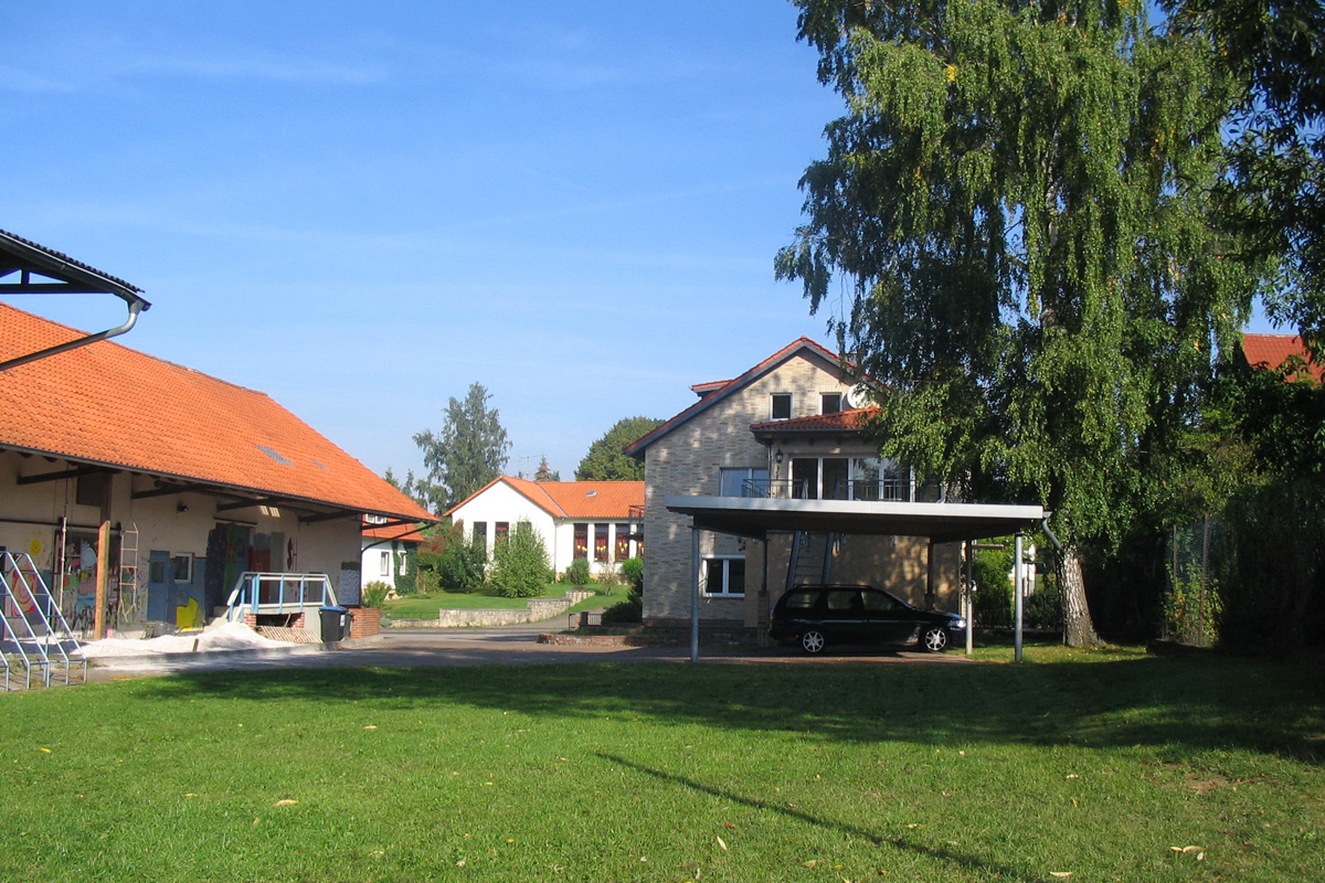 Dafür stehen auf drei Stockwerken ein großer, persönlich gestalteter Hausaufgabenbereich, zwei gemütliche Spielräume, eine Werkstatt, Küche und liebevoll eingerichteter Essraum sowie mehrere ruhige Räume für die therapeutische Arbeit zur Verfügung. Das Außengelände eignet sich zum Spielen und zum Bewirtschaften. Als Besonderheit und gern genutztem „Abenteuerspielplatz“ verfügt die Gruppe über eine große ehemalige Industriehalle, in der z.B. geklettert werden kann.